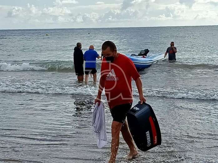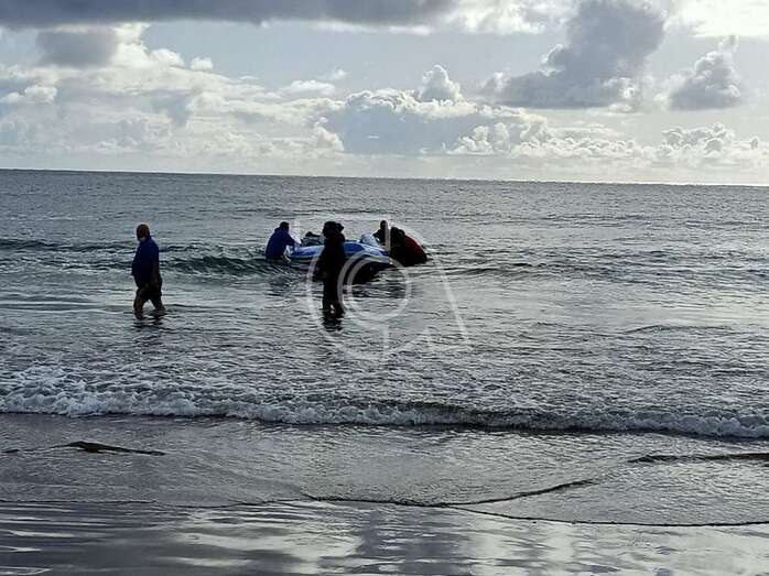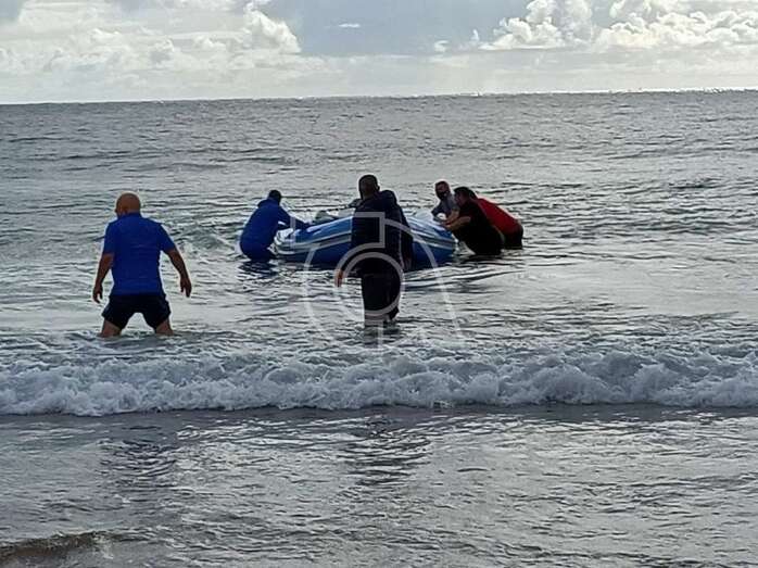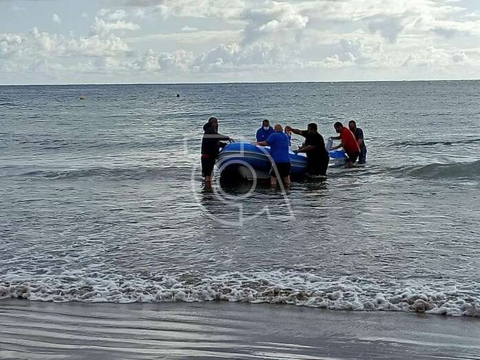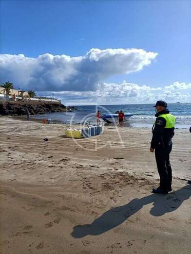 La alerta de la llegada de la zodiac se produjo sobre las 9.30 horas y, según testigos presenciales, eran tres las personas que venían en la embarcación que aún no han sido hallados por los efectivos policiales que rastrean la zona.