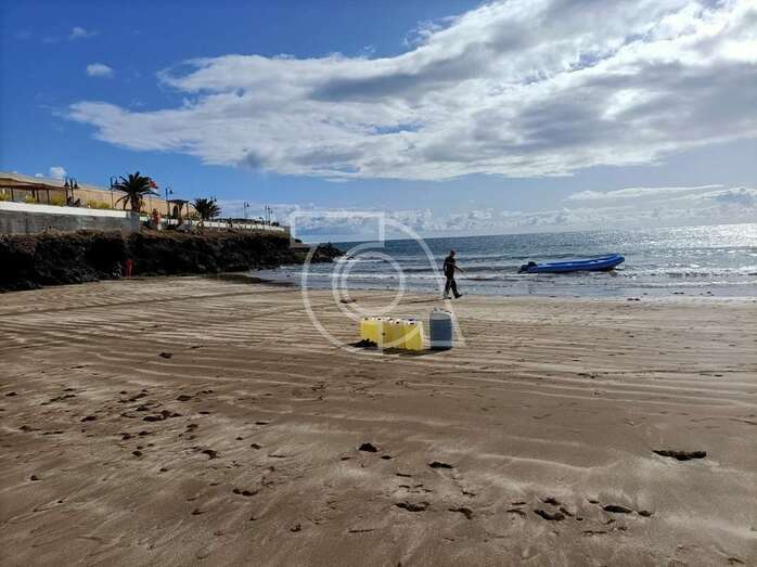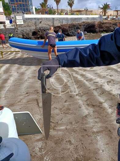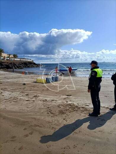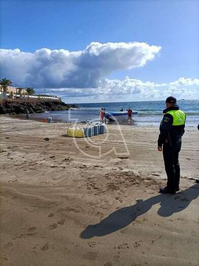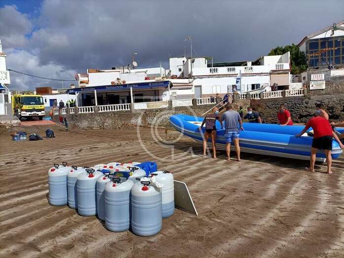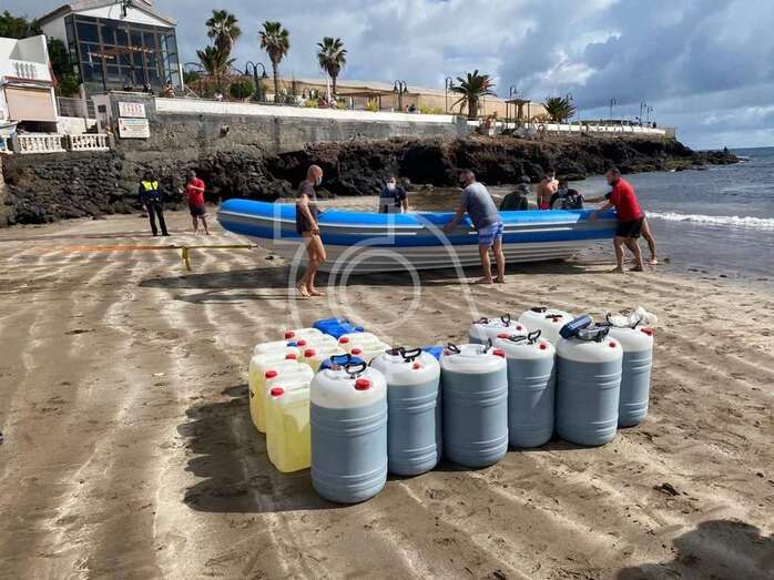El desembarco de la lancha, con motores de 20 y 40 caballos de potencia, se produjo en la parte más tranquilla de la playa, es decir, en su lado norte. Portaba unos 25 botes con capacidad para 25 litros de combustible.