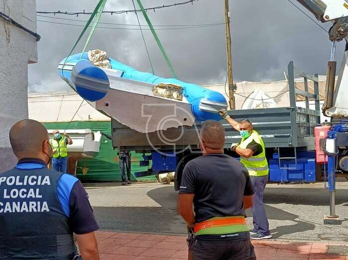 El área de Servicios Municipales del Ayuntamiento de Telde se ha hecho cargo de la lancha, que ha sido sacada ya del mar.