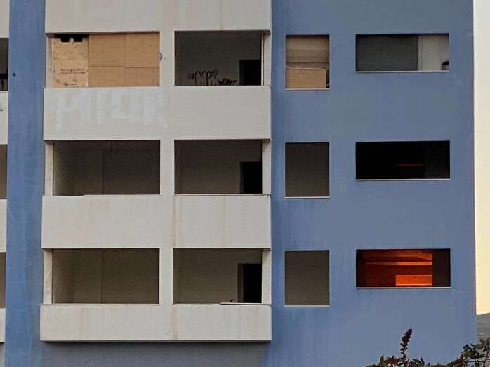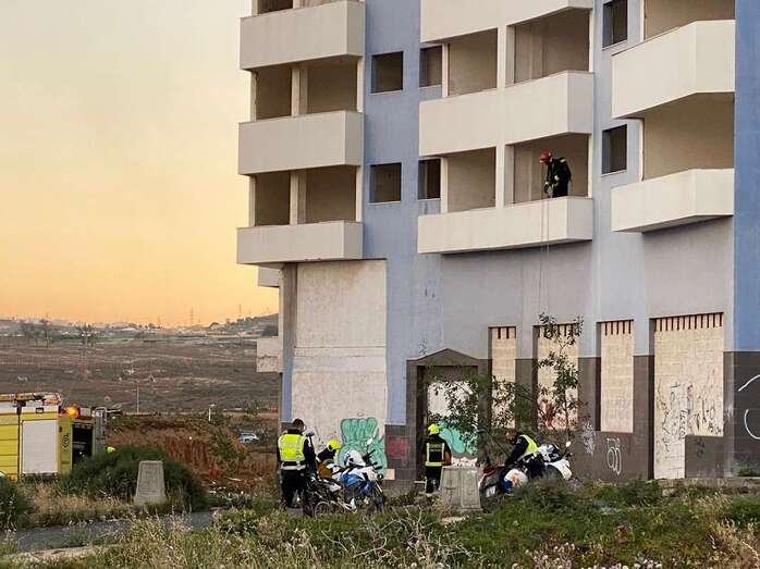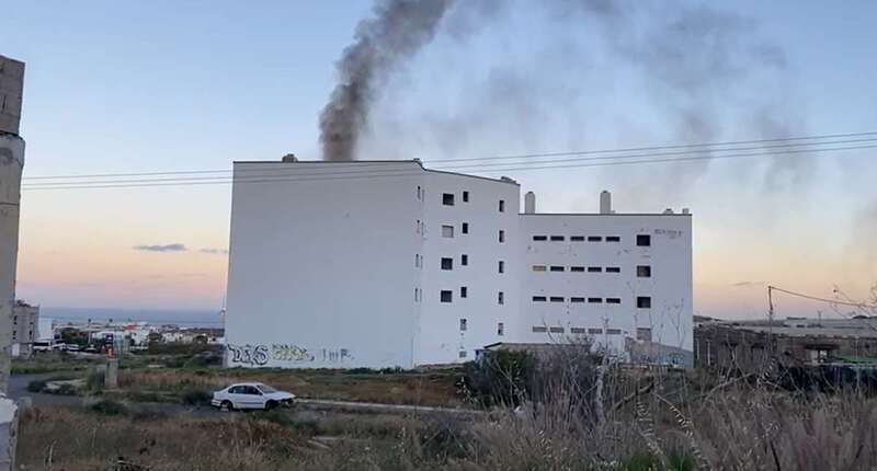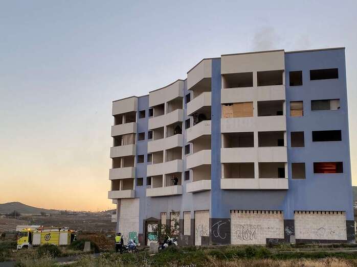 Telde.- Nuevo incendio en el edificio abandonado de varias plantas que se alza en la urbanización inconclusa de Arauz, en el ensanche urbano de Los Llanos de Telde por el sur.