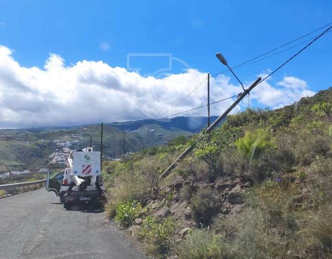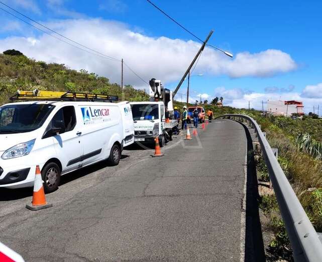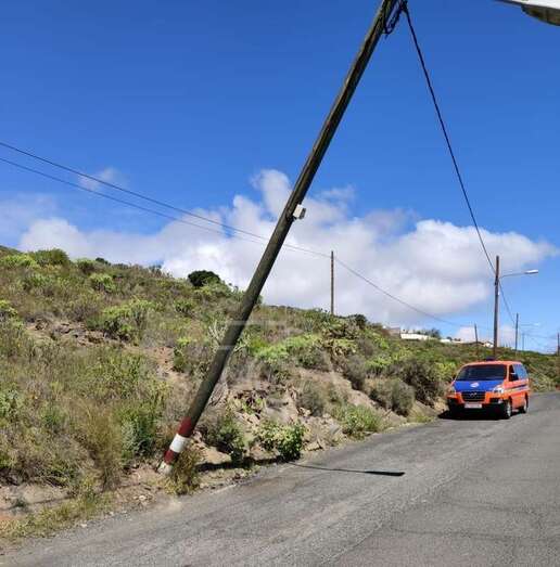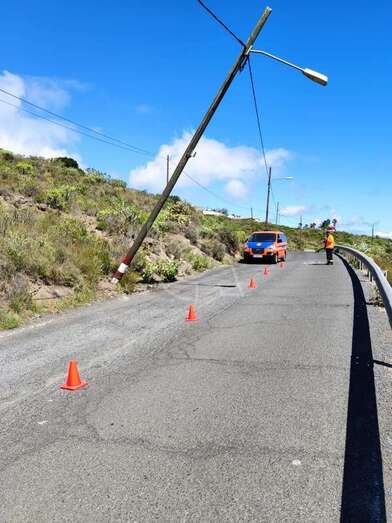 Telde.- Un poste del alumbrado público de la vía de acceso a Montaña Las Palmas se inclinó hacia adelante este mediodía suponiendo un riesgo para vehículos y transeúntes.