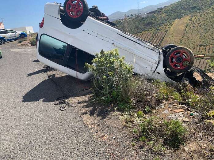 En ese lugar, el conductor perdió el control del vehículo, una furgoneta de color blanco, y se precipitó por la ladera que da a la Finca de la Salud. Quedó con el chasis hacia arriba.