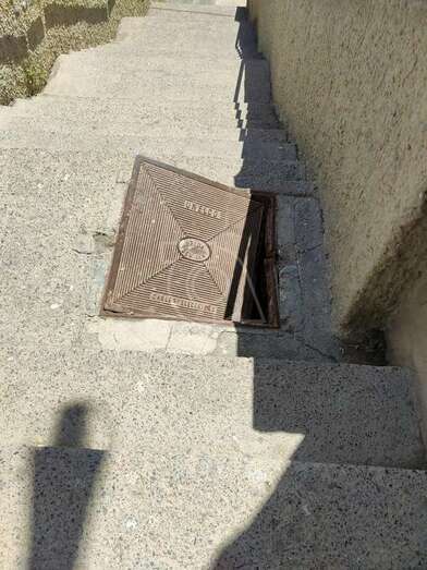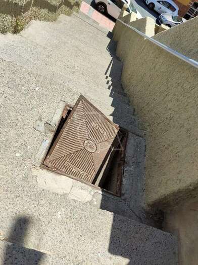 Richard M., de 25 años, bajaba por la escalinata desde el bloque de Los Marinos y pisó la tapa metálica que cedió a su peso y cayó por el hueco de la arqueta ocasionándose erosiones en brazo izquierdo y rodilla derecha, así como un golpe en muñeca y antebrazo derecho, según consta en el informe del facultativo que le atendió en el Centro de Salud de El Calero, a donde acudió tras la caída.