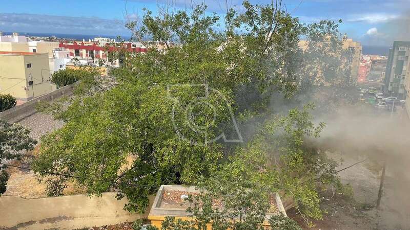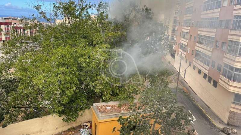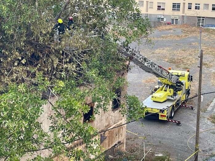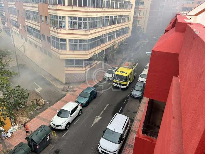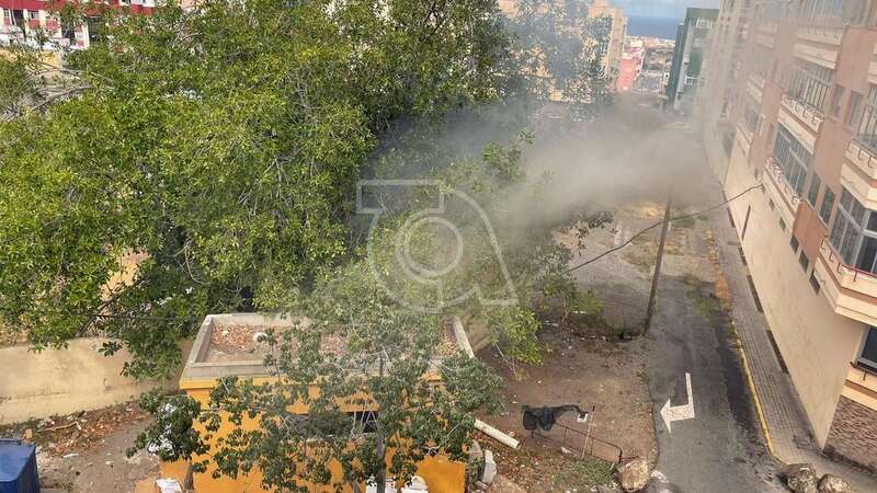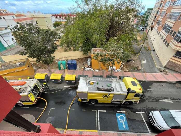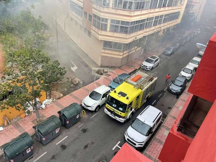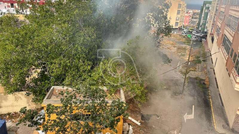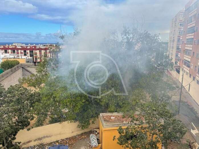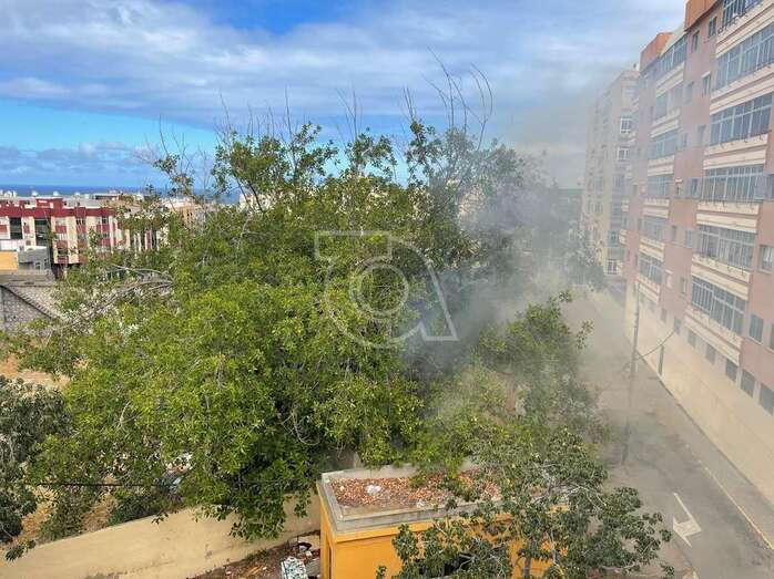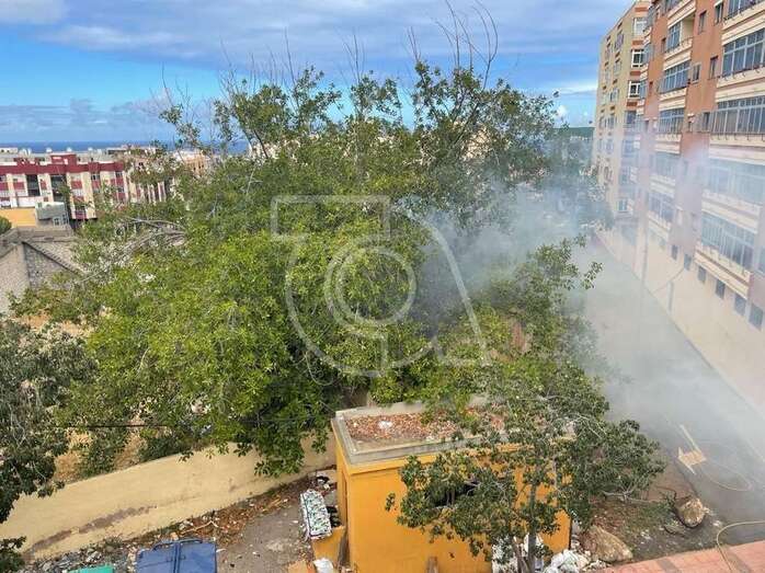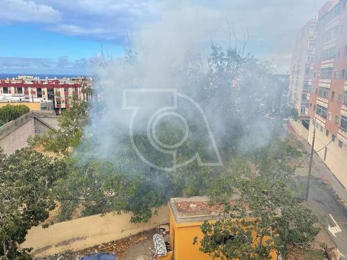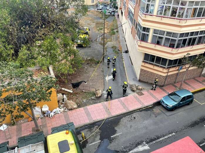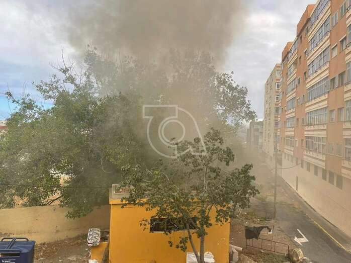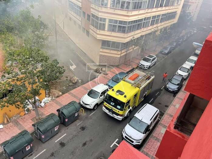 Una dotación del Consorcio de Energencias de Gran Canaria hizo acto de presencia ante la humareda que salía del habitáculo abandonado que está próximo a la calle de Juan Negrín y que alarmó una vez más a la población del entorno.