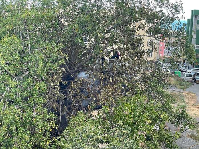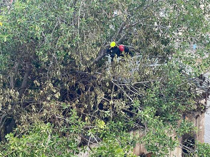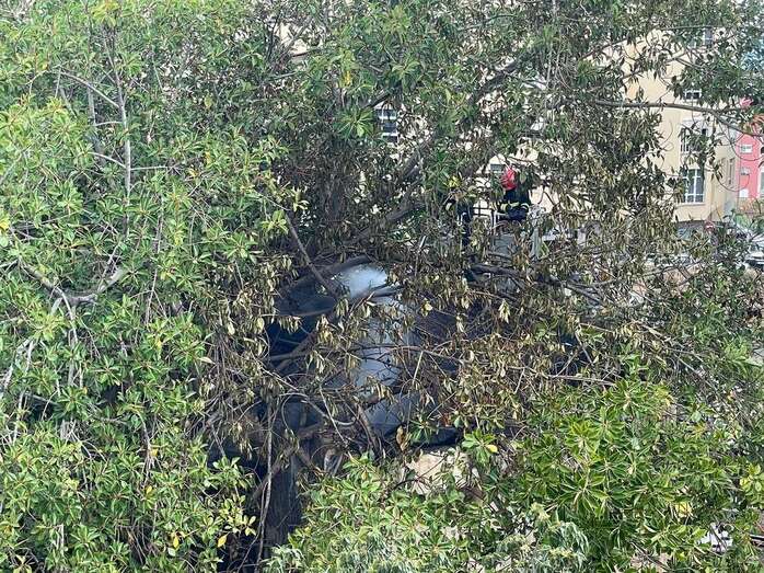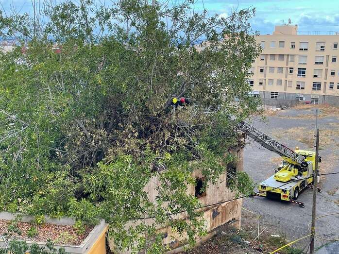 Los bomberos reclamaron el servicio de otra dotación y de un camión-grúa para enfriar las ramas altas de la arboleda que da sombra a este cuarto y que resultaron afectadas por el incendio de esta tarde.