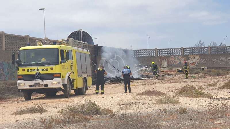 Telde.- Los bomberos sofocaron este mediodía un pequeño incendio que se declaró en un solar vallado próximo al vial costero y a la rotonda de El Drago, y que afectó a una choza.