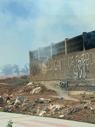 Según constató in situ un redactor de TELDEACTUALIDAD, el fuego se originó en el extremo de la parcela más cercano al vial costero, un terreno municipal que estaba llamado a ser el campo de fútbol de La Garita, y calcinó casi por completo una construcción de madera.