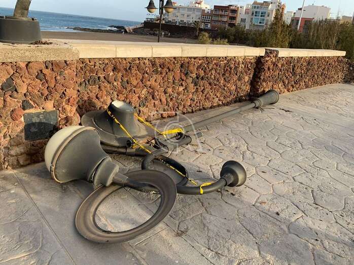 Telde.- Los bomberos del parque zonal de Telde tuvieron que acordonar a última hora de la tarde de este sábado un tramo de la avenida marítima de Melenara ante el peligro de caída de una luminaria con su base corroída por el ambiente marino.