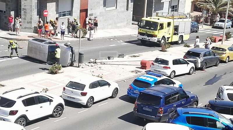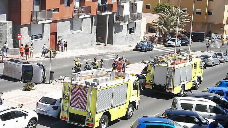 Hasta el lugar del siniestro acudieron dos unidades de bomberos del parque zonal de La Garita, la unidad de Atestados de la Policía Local, que instruyó las diligencias del suceso, y una ambulancia de soporte vital básico del SUC, pero sus sanitarios no tuvieron que actuar. El personal del Consorcio de Emergencias de Gran Canaria repuso el coche a su posición natural.