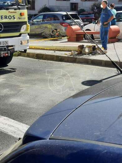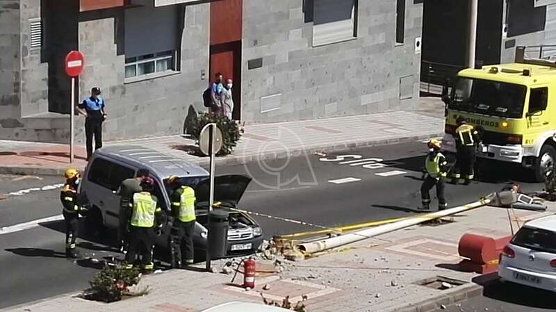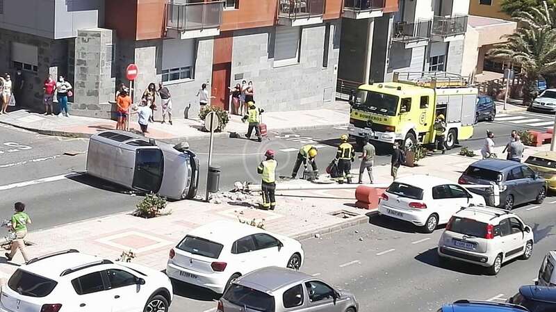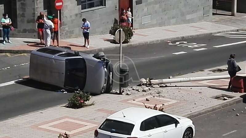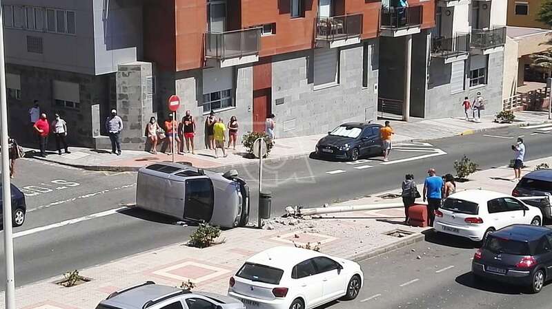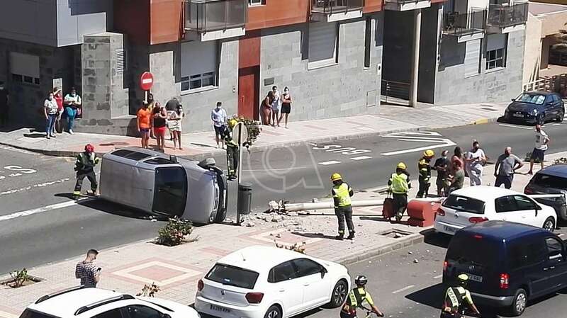 Telde.- Un vehículo volcó hace unos minutos en la calle de Américo Vespucio, en Salinetas, tras impactar contra una farola, la que arrancó de cuajo.