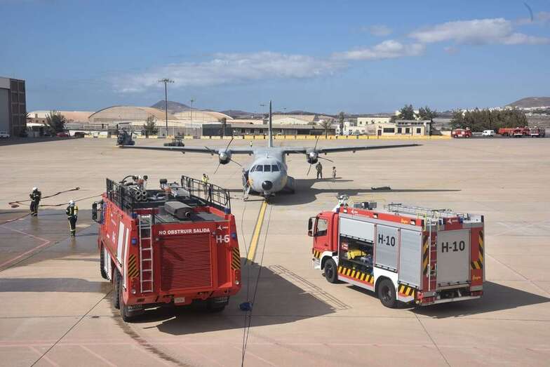 El ejercicio –explican desde Aena– simuló una emergencia aeronáutica de un vuelo, en concreto un avión militar de transporte con cinco tripulantes y 80 pasajeros, que avisa de un incendio en el motor izquierdo. La aeronave aterrizó de emergencia, saliendo de la pista y rodando hasta la plataforma militar.