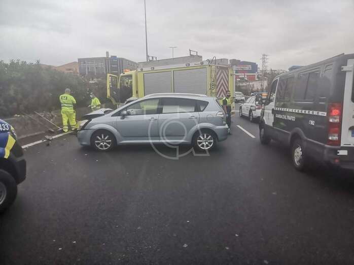 El accidente ha tenido lugar a la altura del Barranco de El Calero, en dirección sur. Se trata de una colisión entre un camión y un turismo que han quedado atascados en el carril izquierdo de la vía.