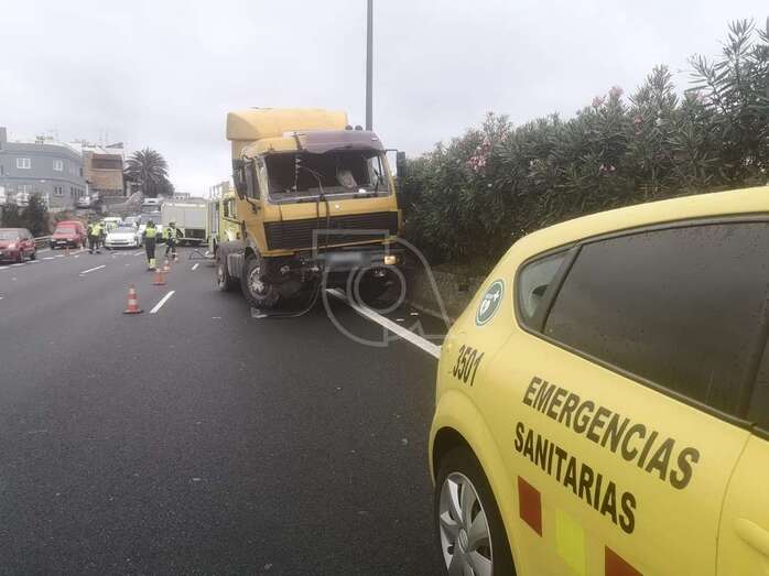 Según el 112, el vehículo pesado saltó la mediana e impactó contra otro vehículo. A causa del choque, el conductor del camión salió despedido y resultó con politraumatismo de carácter grave y tuvo que ser trasladado en una ambulancia medicalizada al Hospital Universitario Insular de Gran Canaria.