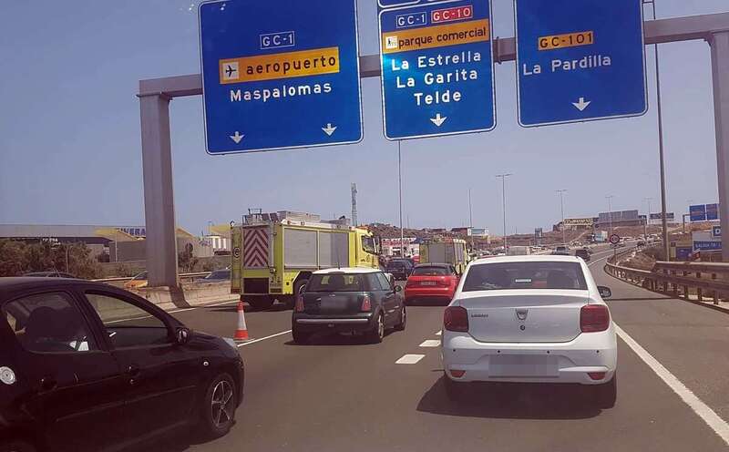 Tres heridos leves en una colisión de cinco vehículos en la GC-1, a la altura de Telde, que causa largas colas