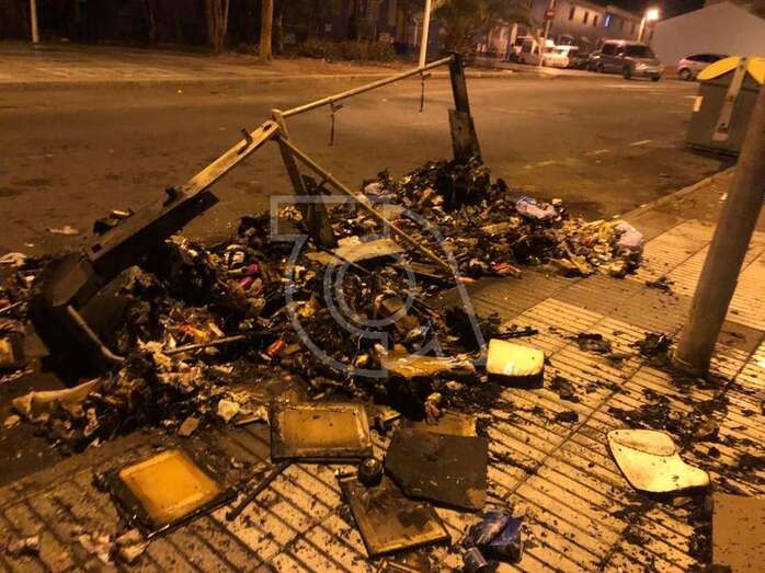 Dos contenedores destinados a la recogida de residuos sólidos resultaron totalmente calcinados en el Valle de Jinámar en un incendio que se da por hecho que fue intencionado.