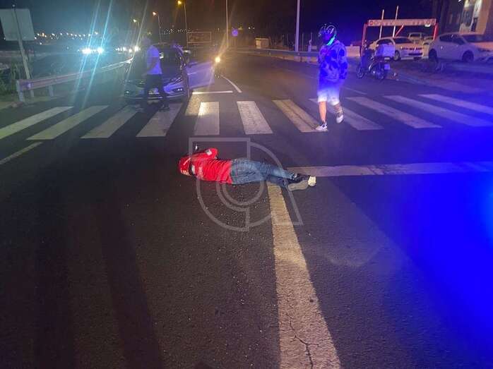 Un motorista sufrió hace unos minutos una caída en la vía de circunvalación al casco urbano de Telde, en las inmediaciones del paso peatones que a la altura del complejo deportivo sin abrir de La Barranquera.