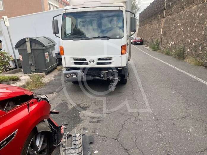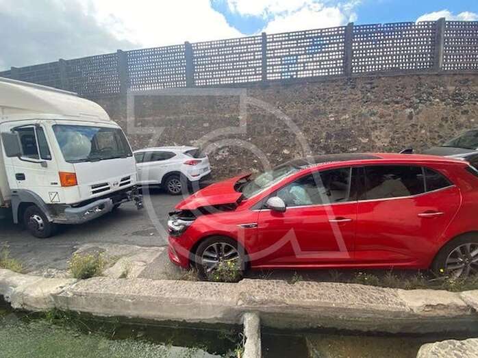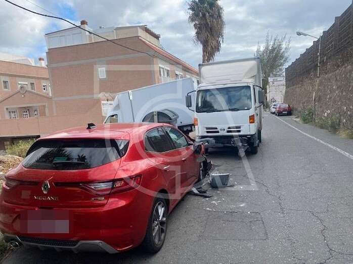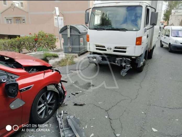 Dos personas resultaron heridas leves en un aparatoso accidente de tráfico acaecido este lunes, entre un turismo y un camión, en la carretera que comunica el casco de Telde con el barrio de La Pardilla.