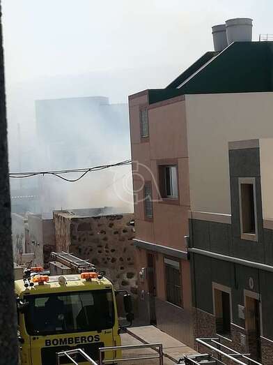 El siniestro tuvo lugar sobre las 16.00 horas y fueron los vecinos de las viviendas colindantes los que dieron la voz de alarma ante la salida de humo de este inmueble ubicado en la vía de acceso a Lomo Caraballo.