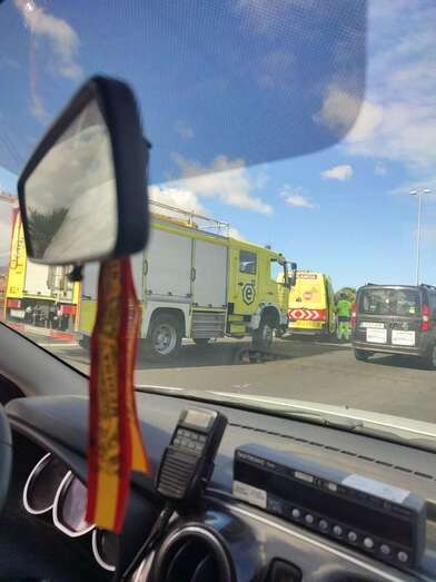 En el suceso intervienen bomberos del Consorcio de Emergencias de Gran Canaria, efectivos de Carreteras del Cabildo y personal sanitario del Servicio de Urgencias Canario (SUC).