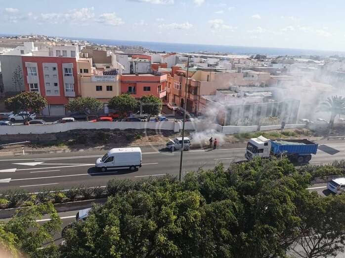 Un vehículo desprende una gran humareda por una avería cuando circulaba por la GC-1 a la altura de Telde