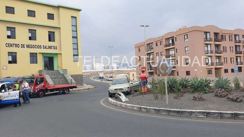 La Policía Local de Telde instruyó las diligencias del suceso, mientras que una grúa retiró el vehículo siniestrado de la rotonda.