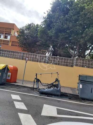 El vandalismo reduce a cenizas un contenedor en Las Remudas (Telde)