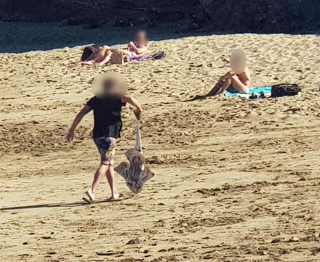 Usuarios de la playa de Aguadulce denunciaron este domingo sobre el mediodía la acción de un pescador submarino furtivo con fusil que capturó un tiburón angelote, especie que está protegida y catalogada como en peligro de extinción, y lo destripo en la orilla de la cala a la vista de todos los bañistas.