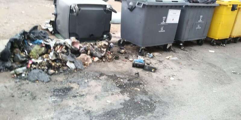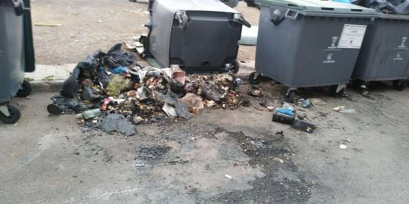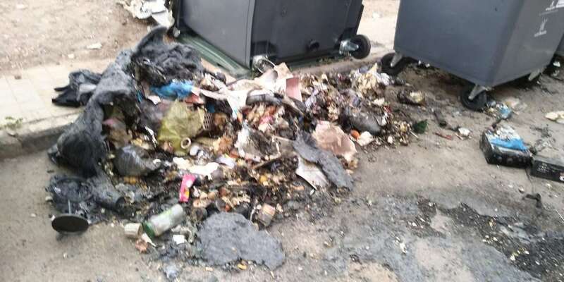 Otro incendio claramente intencionado calcinó esta madrugada dos depósitos de plástico ubicado a la recogida de residuos sólidos domésticos en la calle de Sagunto, en el barrio de Las Huesas, en la tercera acción de esta índole que sufre este punto de contenerización del servicio público de Limpieza Viaria.