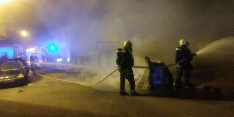 El fuego, que alarmó a los vecinos, ocasionó daños también a la fachada de varios viviendas y a tres turismos y un camión que aparcados en las proximidades de los recipientes.