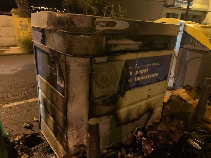 Los dos incendios provocados por este joven calcinaron tres contenedores, uno destinado a la recogida de vidrio y dos para la recogida de cartón. Además resultó dañado por las llamas el muro que cierra el perímetro del CEIP Placido Fleitas.