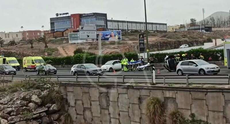 Tres heridos en un accidente múltiple con vuelco en la GC-1 a su paso por Telde