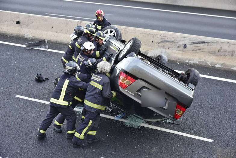 Al parecer, uno de los vehículos frenó y el que le seguía impactó dando dos vueltas de campana. En el vehículo volcado viajaba una pareja de entre 50 y 60 años y ambos tuvieron que ser evacuados en ambulancia.