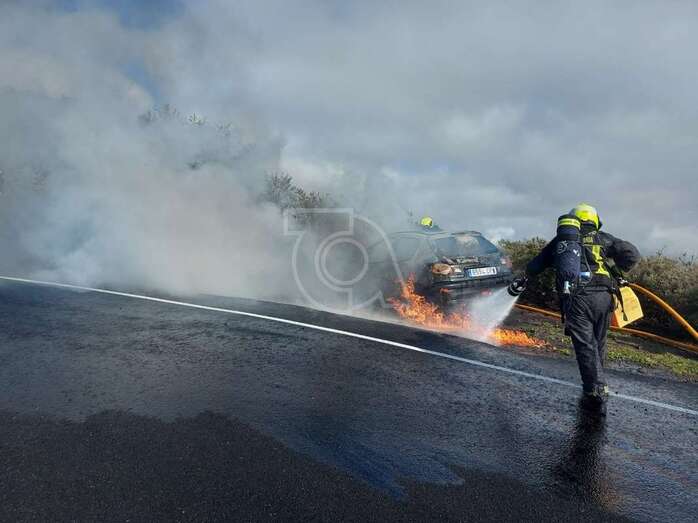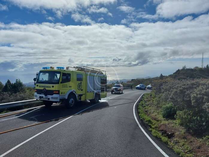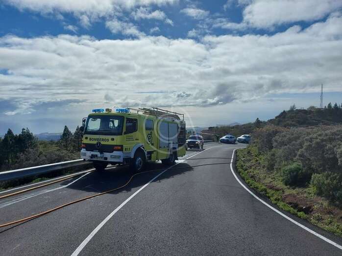 Los bomberos del parque zonal de Telde sofocaron hace unos minutos el incendio de un vehículo que ardió cuando circulaba por la carretera general GC-131, a la altura del barrio cumbrero de Cazadores.