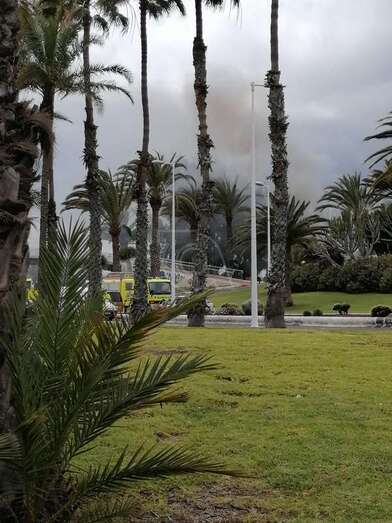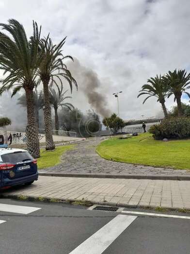 Los servicios de emergencias tratan de sofocar en estos momentos un incendio, al parecer intencionado, que afecta a los locales del anfiteatro al aire libre que está situado en la parte baja del complejo residencial de Las Remudas, próximo a la autovía GC-1.