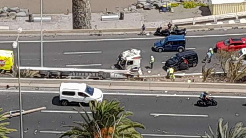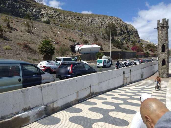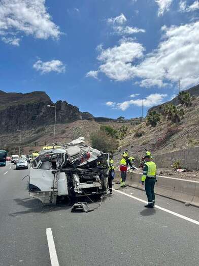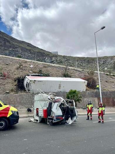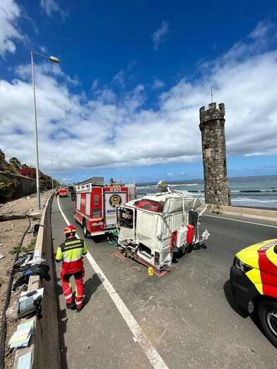 Cuatro ambulancias del Servicio de Urgencias Canario (SUC), efectivos de la Guardia Civil, Policía Local y bomberos de Las Palmas de Gran Canaria, así como personal de Carreteras han participado en el dispositivo de emergencias.