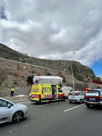 El aparatoso accidente está provocando además importantes retenciones de tráfico en ambos sentidos, a la salida y a la entrada de la capital grancanaria. De hecho, el túnel Adolfo Cañas ha sido cerrado y el tráfico se está desviando por la GC-3.