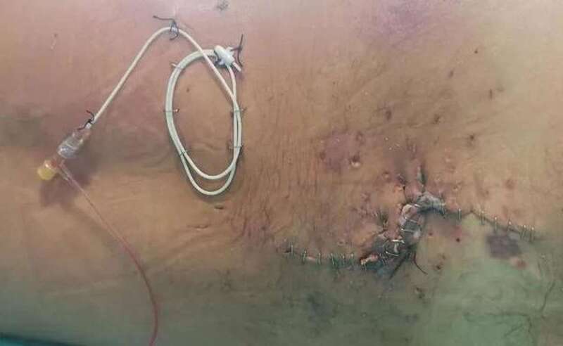 Imagen de las heridas que sufrió en la espalda/C7. Imagen de las heridas que sufrió en la espalda/C7.