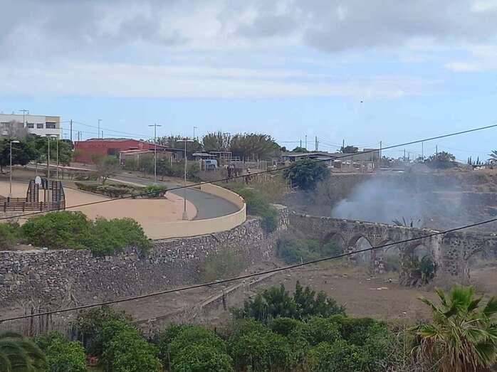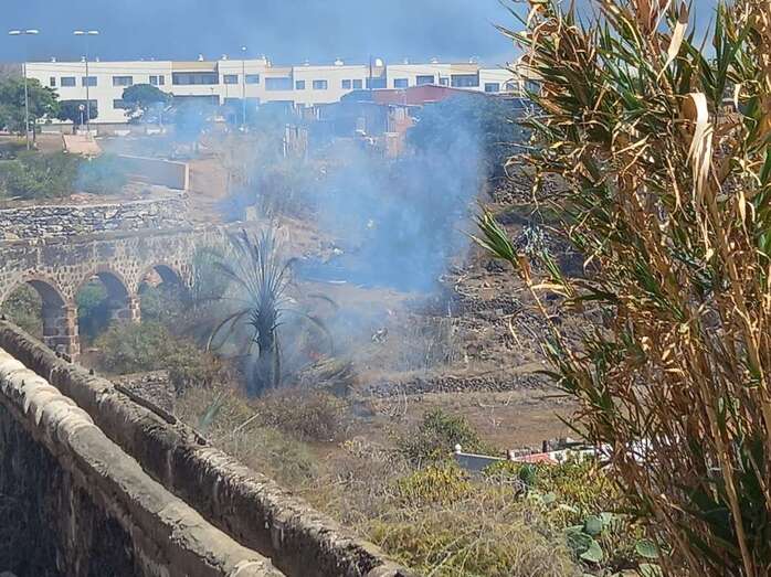 El fuego se localizó en el cauce del barranco de Las Bachilleras, en el tramo que discurre entre los barrios de El Caracol y El Contrapeso, a la altura de la calle Tirma y del antiguo acueducto de La Canal.