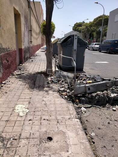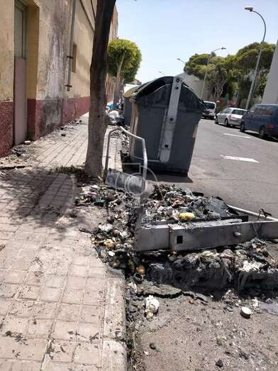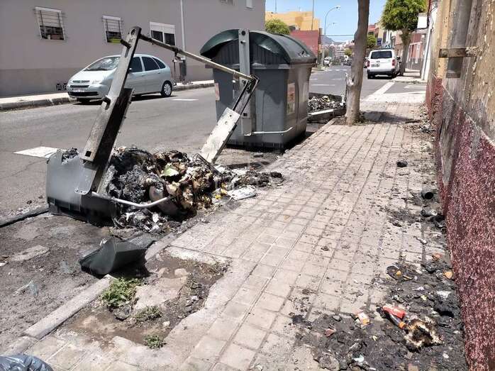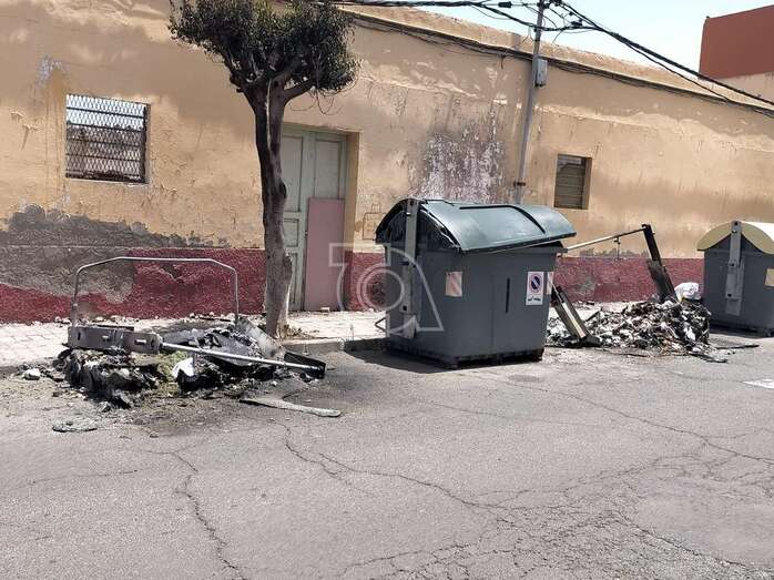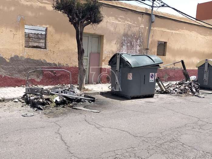 Dos contenedores del servicio de recogida de residuos urbanos de Telde, ubicados en la calle de Roque Nublo del barrio de El Caracol, ardieron esta madrugada hasta quedar totalmente calcinados, en un punto donde se repiten con frecuencia la quema de este tipo de recipientes.
