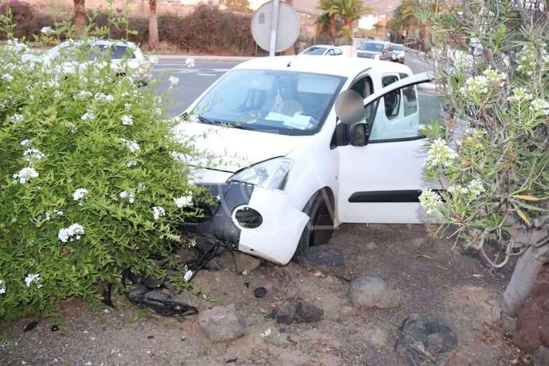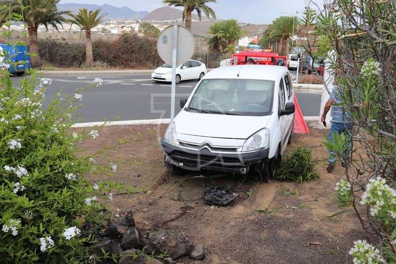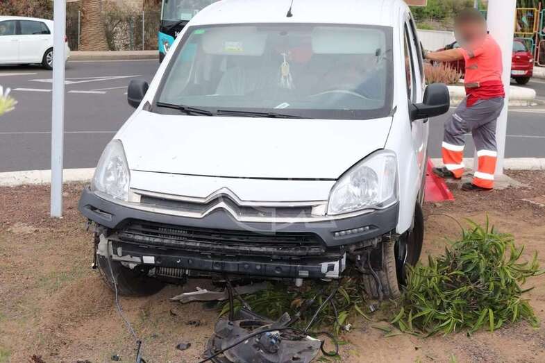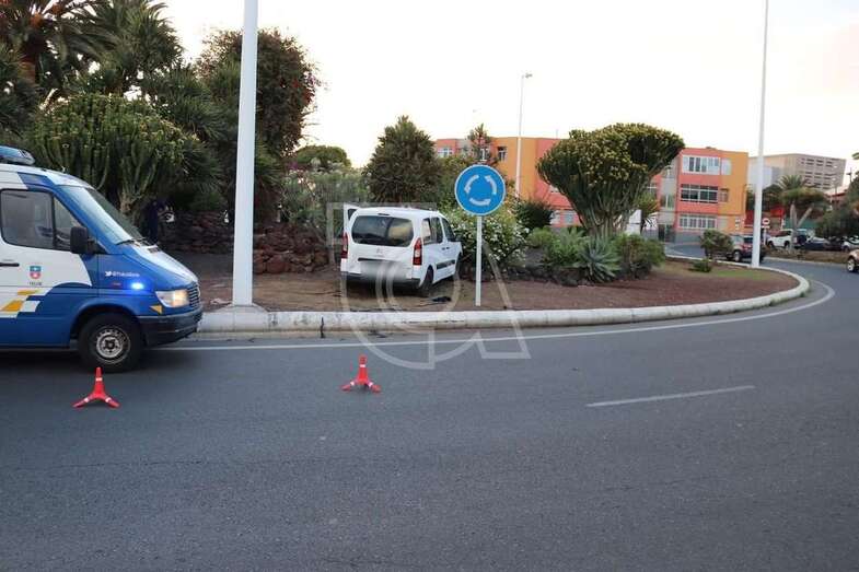 Una furgoneta se salta el bordillo e invade la glorieta de El Roque (Telde)