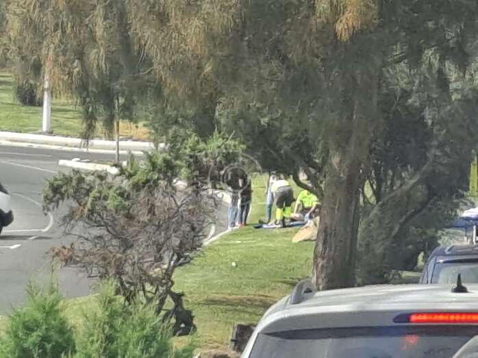 El accidentado, un varón de 54 años, quedó muy dolorido sobre la pradera verde y allí fue socorrido en primera instancia por los profesionales de una ambulancia de transporte sanitario no urgente (TSNU) hasta llegada del personal de una unidad móvil de soporte vital avanzado, que lo atendió durante varios minutos.