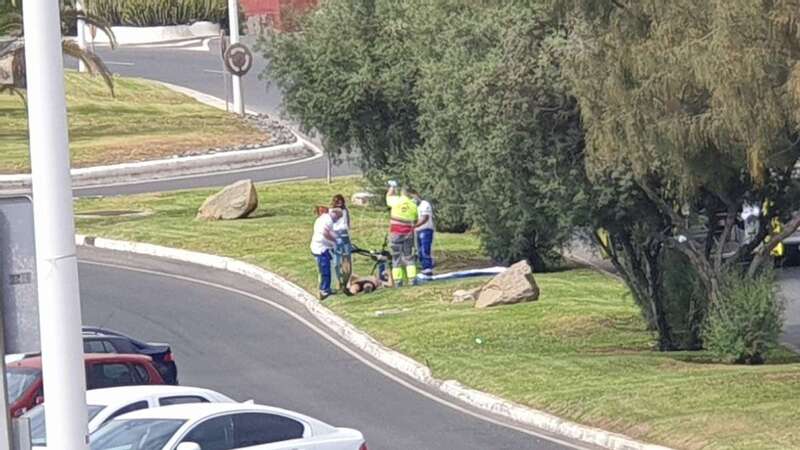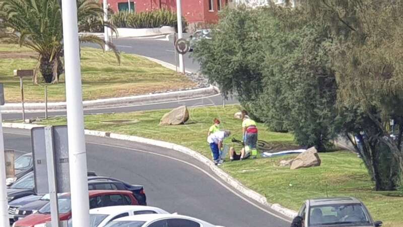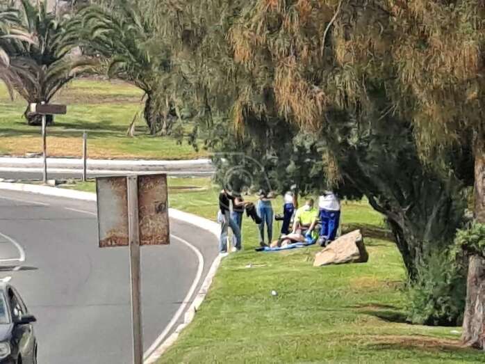 Un ciclista sufrió esta tarde una aparatosa caída en el acceso a la Avenida Américo Vespucio desde la rotonda de Melenara.