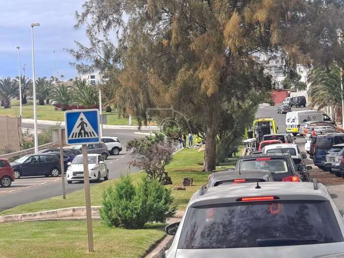 El suceso ocurrió minutos después de las 16.30 horas cuando el ciclista tomaba la curva desde la glorieta conocida popularmente como del barco para enfilar la vía de entrada a Clavellinas y Salinetas. La bicicleta derrapó y el ciclista cayó sobre el parterre de césped que divide los dos sentidos de esta vía.