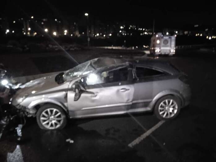 Un vehículo volcó este sábado a última hora de la noche cuando realizaba el giro en la rotonda del Valle de Jinámar está en la entrada a este barrio desde la autovía GC-1.