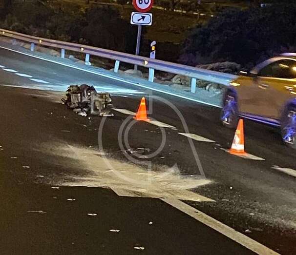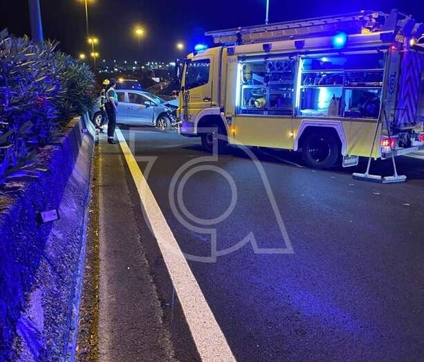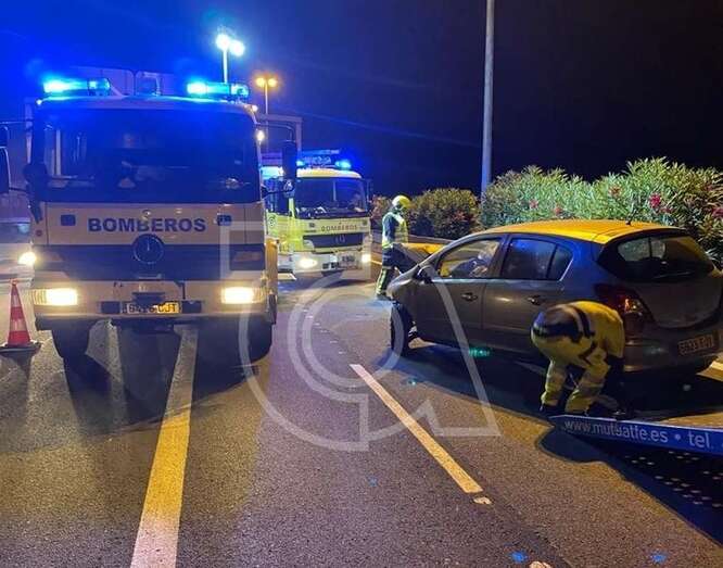 El motor de un vehículo salió despedido en un aparatoso accidente de tráfico ocurrido a primera hora de la madrugada de este domingo en la autovía GC-1, en dirección sur, a la altura de la rotonda de la Base Aérea de Gando.