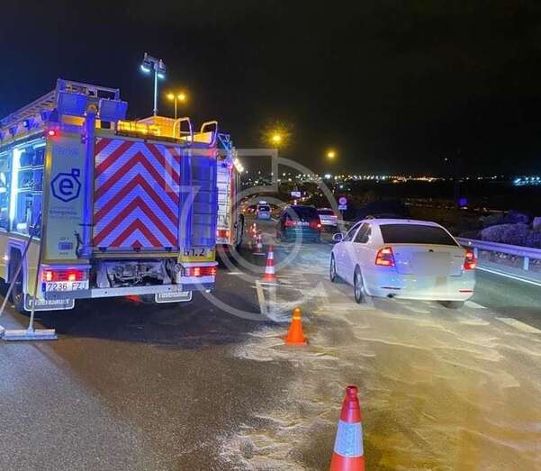 El único vehículo implicado en el siniestro, un Opel Corsa, iba conducido por una mujer que salió por sus propios medios del habitáculo del coche que chocó contra la mediana y bloqueó tres carriles de la carretera formándose una retención importante durante mucho tiempo.