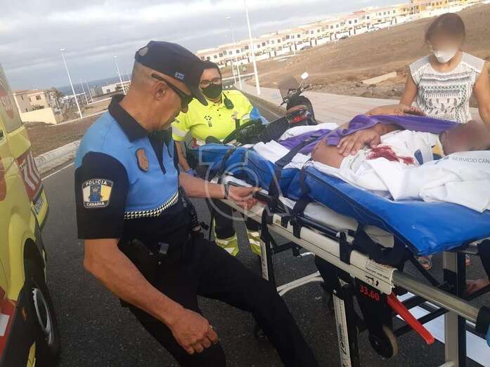 La víctima de accidente, un joven de unos 20 años, fue atendida in situ por profesionales de una ambulancia del Servicio de Urgencias Canario, que ultimaba en el momento de redactar esta información su traslado al Hospital Insular de la capital grancanaria con politraumatismo craneal y policontusiones.