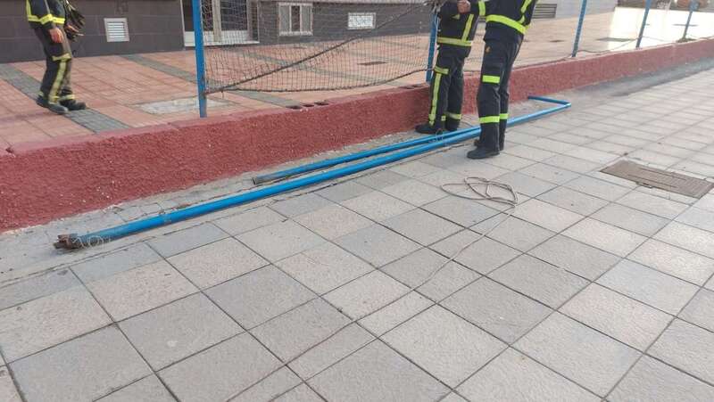 Los bomberos de Telde retiran un poste de la cancha de Marpequeña ante el riesgo de caída
