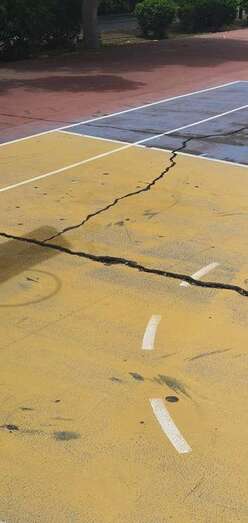 Leo Sánchez había acudido junto a sus hijos a disfrutar de un rato de deporte, pero todo se dio al traste cuando durante un partido de baloncesto introdujo el pie en una de imponentes grietas que han aparecido en las canchas, sufriendo una torcedura de tobillo.