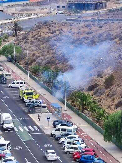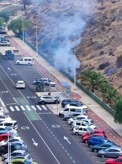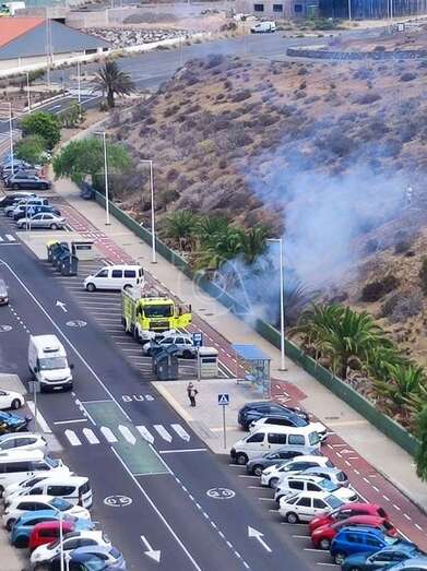 Bomberos del Consorcio de Emergencias sofocaron un conato de incendio que se originó en el Valle de Jinámar, en un parterre en la calle de Manuel Alemán Álamo, a la altura del número 49 (antiguo bloque 4).